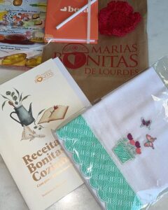 Adoramos! Cada uma ganhou de presente o livro de receitas Bonitas na Cozinha, um pano de prato da @driburatto e um caderno lindo da @boraexperiencias !